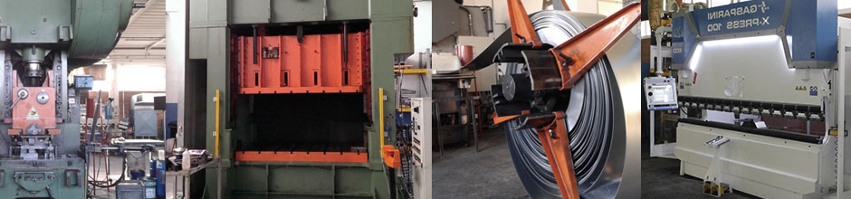 Tranciatura, imbutitura, punzonatura e piegatura sia di ripresa su pezzi già lavorati, sia da nastri di lamiera, metallo o lega sotto forma di coils o bandellato